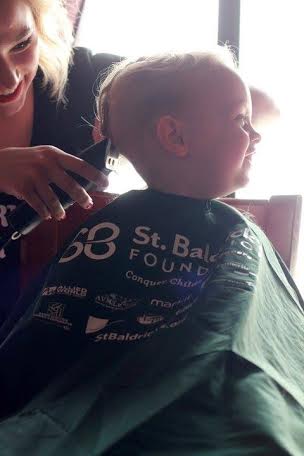 Needless to say, my little blondy- locks got some long overdue, well deserved, real-deal attention for his first real haircut. We shaved those luscious baby curls to raise money in support of Donna, her loving wonderful family, and St. Baldricks. And raise money, we did!