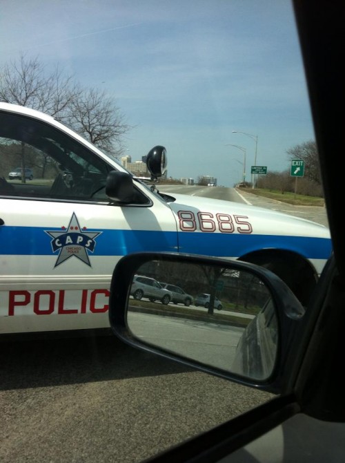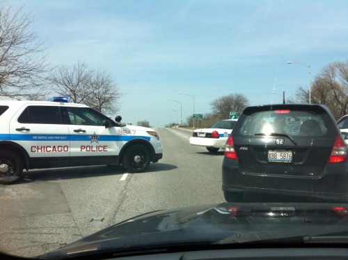 This is the world we live in now, folks. Yesterday a blogging friend in Boston wrote about how she watched some yahoo carry another backpack to the Boston Marathon finish line — the guy walked right past she and her family. Today I get caught in a parking lot on Lake Shore Drive.