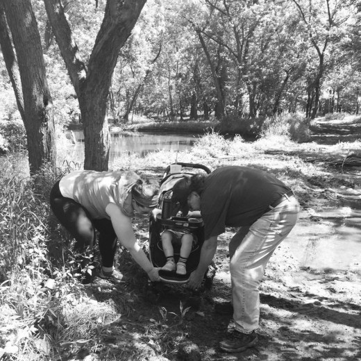Two walking toddlers, one toddler in a stroller, a bigger kid, and two moms. We all convened while the moms hashed it out. Move forward into the muck, certain to ruin my super cute purple Nikes and Katy’s fresh pedicure? Retrace our steps back, hoping against hope that the increasingly tired and hungry toddlers would make it back to the cars? This was serious business, my friends. I made a case for separating, but Katy would have none of it. We were in this together. This was Camp Mom, dammit — no moms would be left behind on Katy’s watch. Onward, we agreed! Into the muck it would be!
